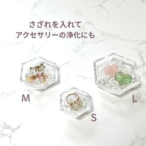さざれを入れてリングやピアスをのせるとアクセサリーの浄化にも使えます。