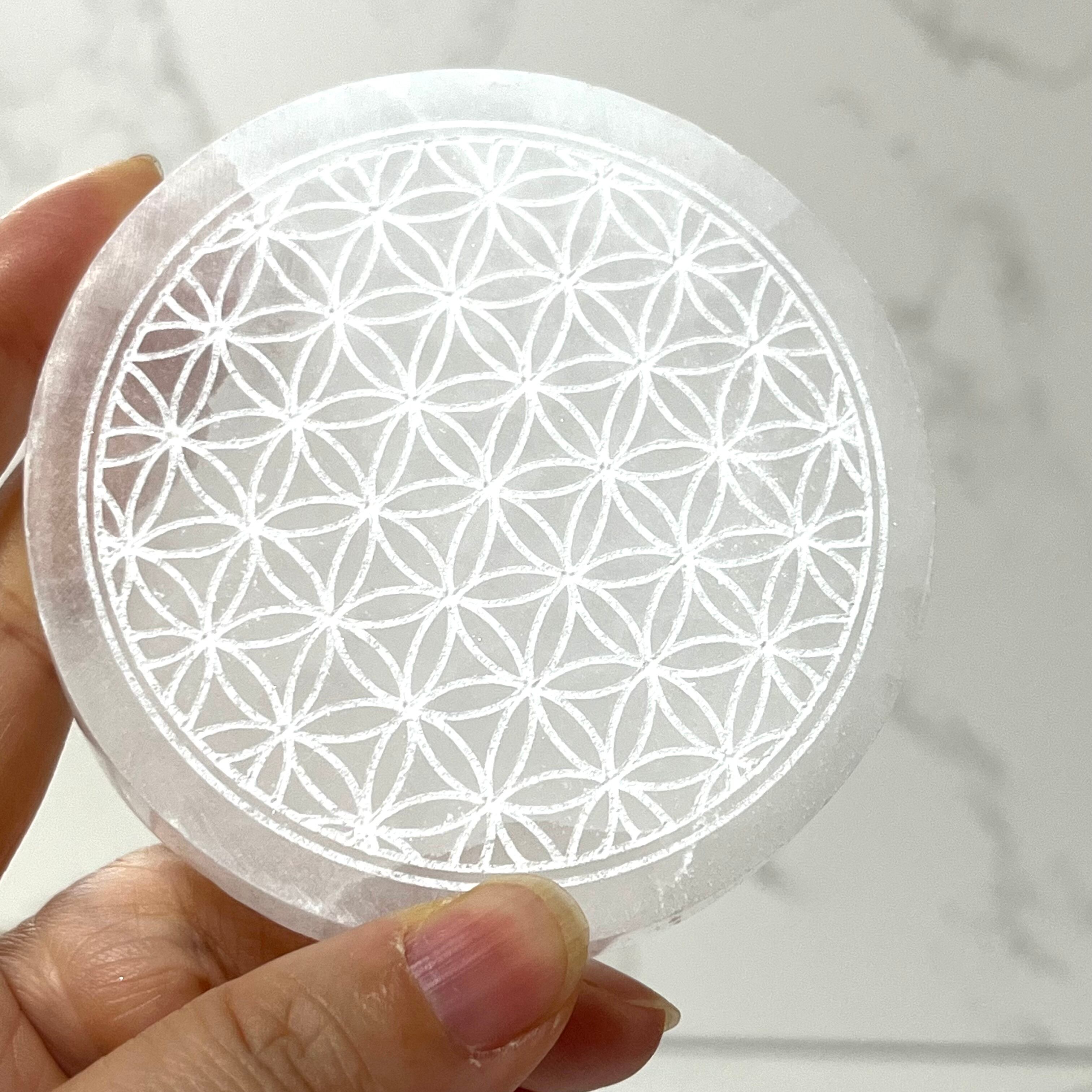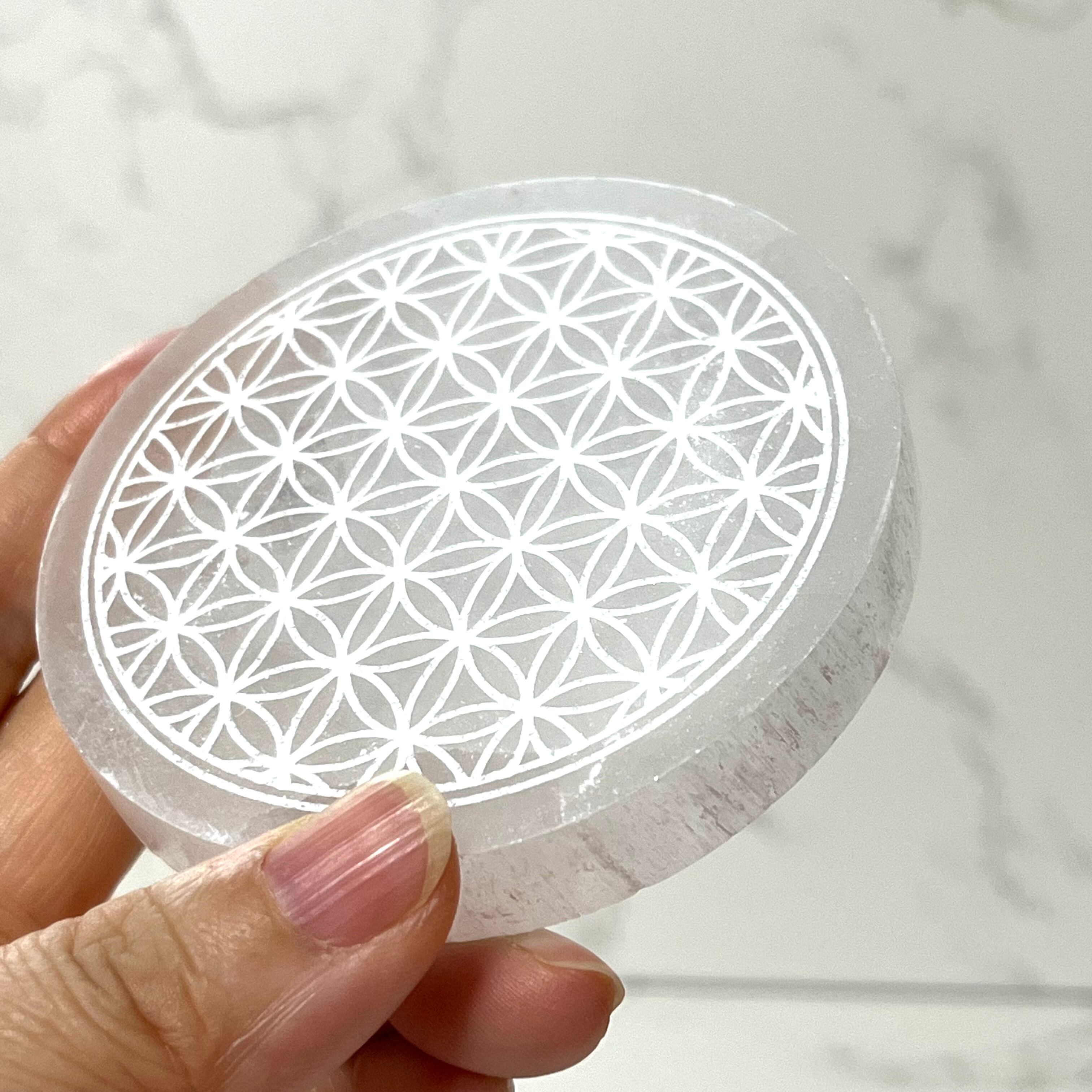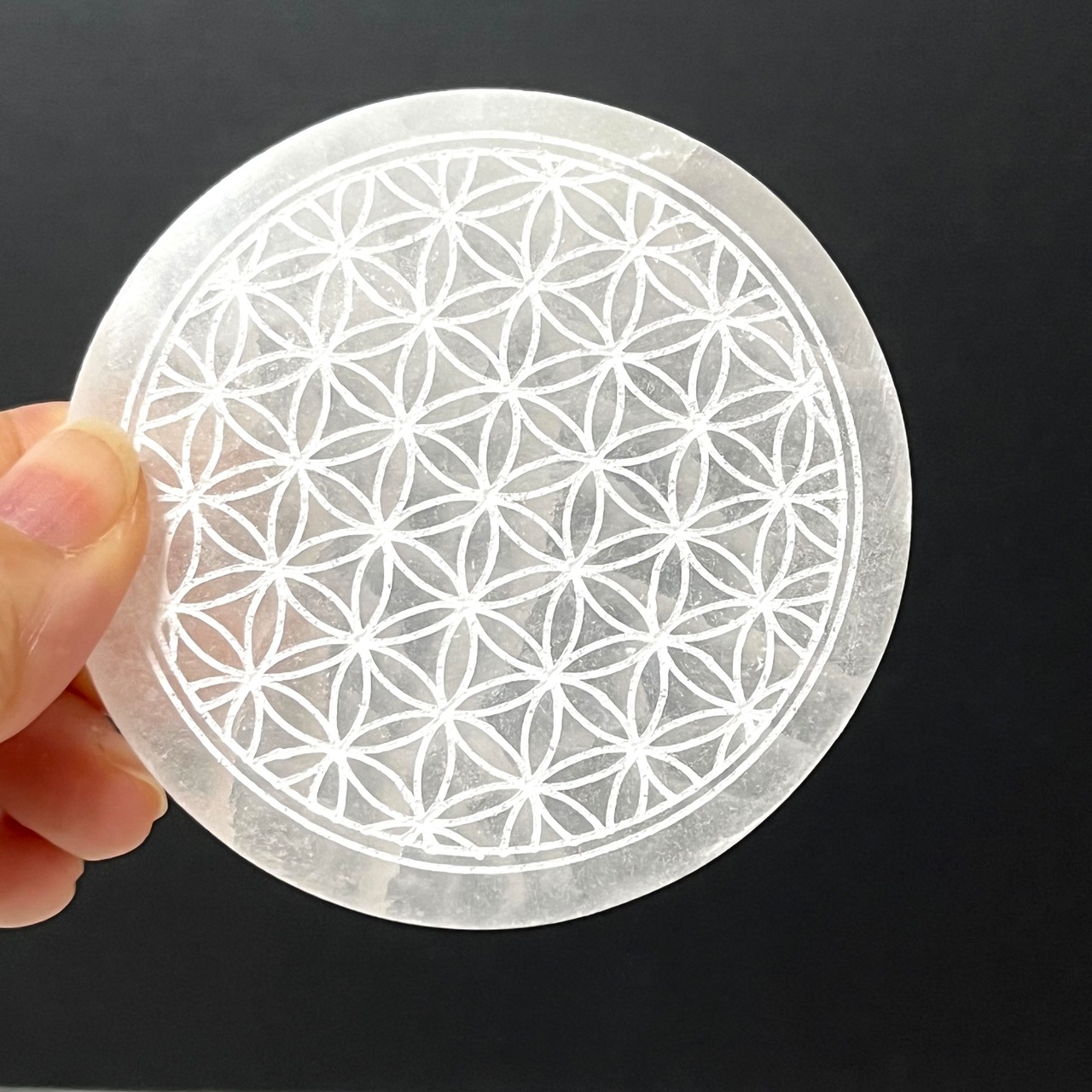 セレナイト プレート・神聖幾何学・フラワーオブライフ・8cm