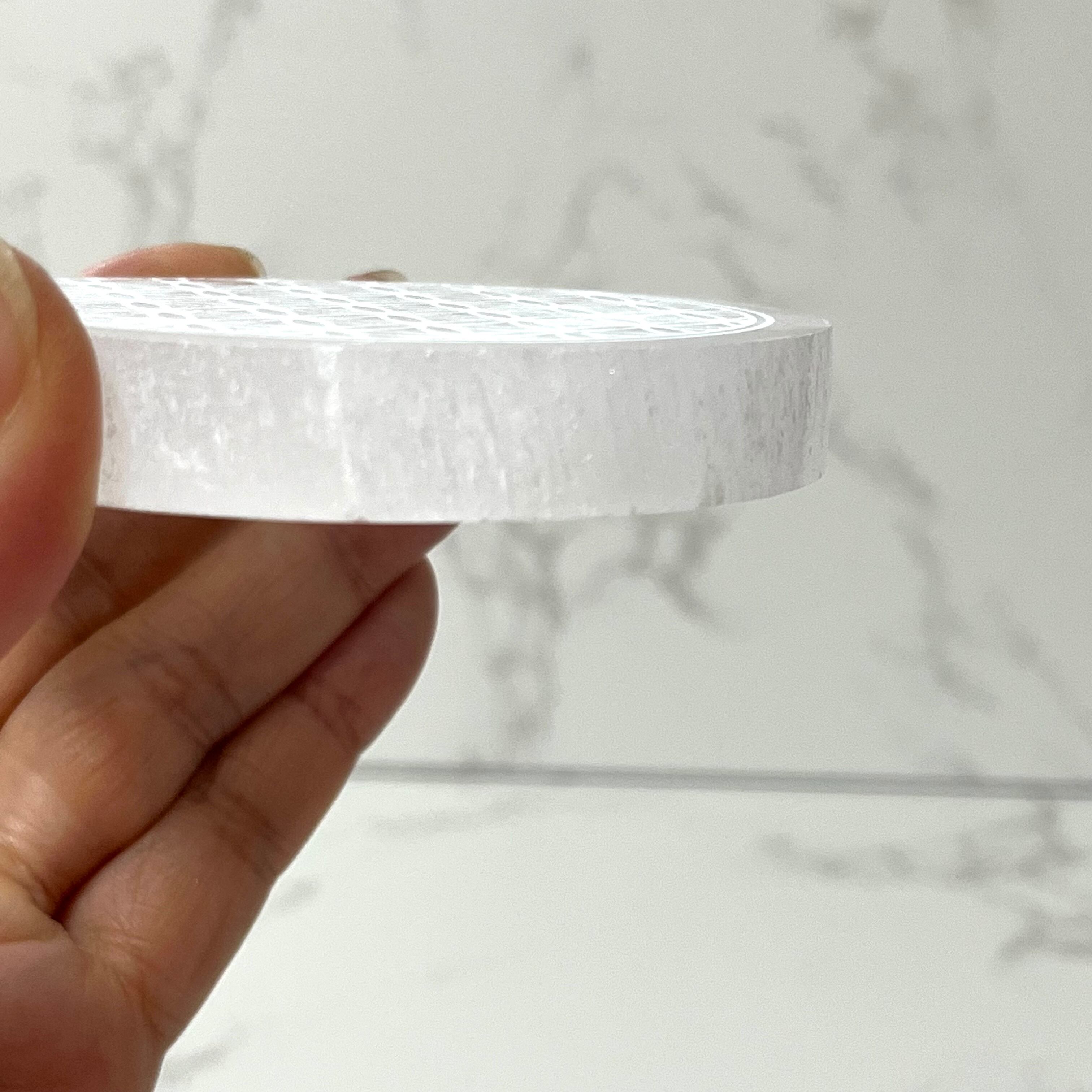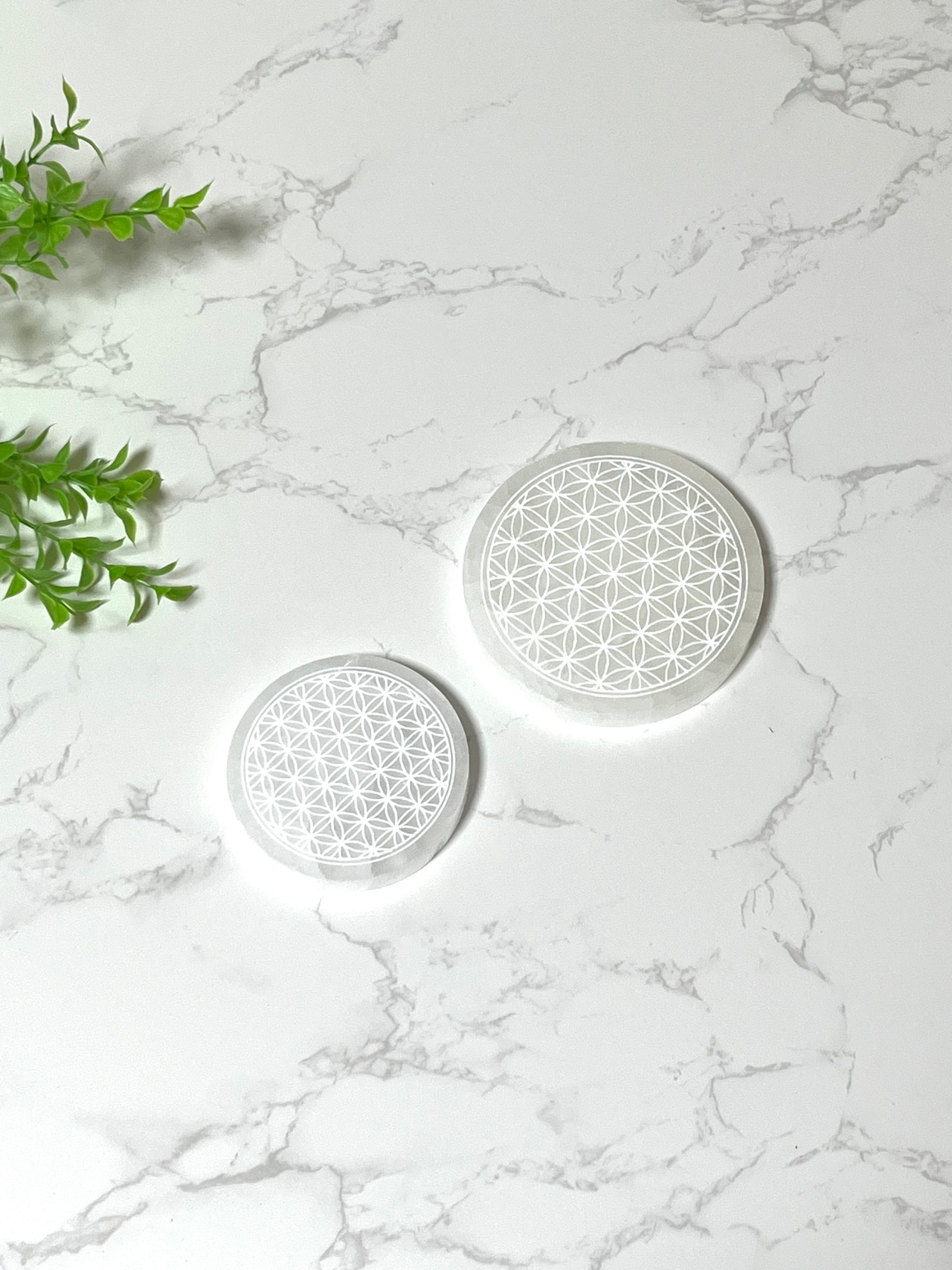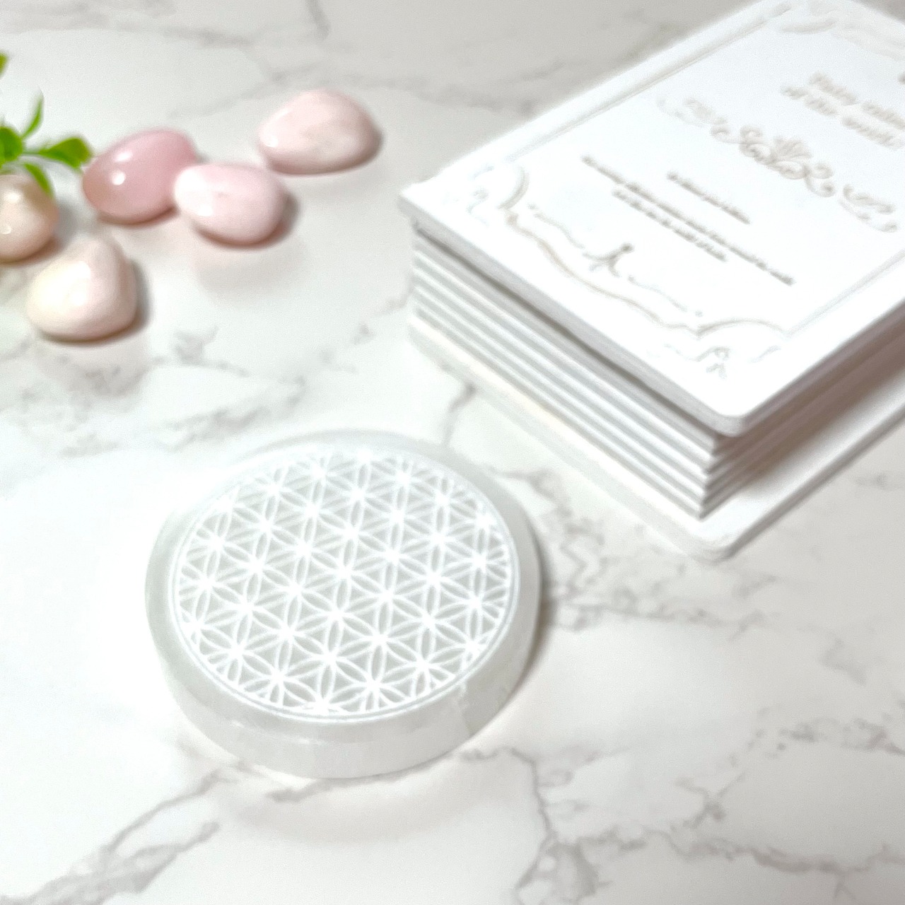 セレナイト プレート・神聖幾何学・フラワーオブライフ・8cm