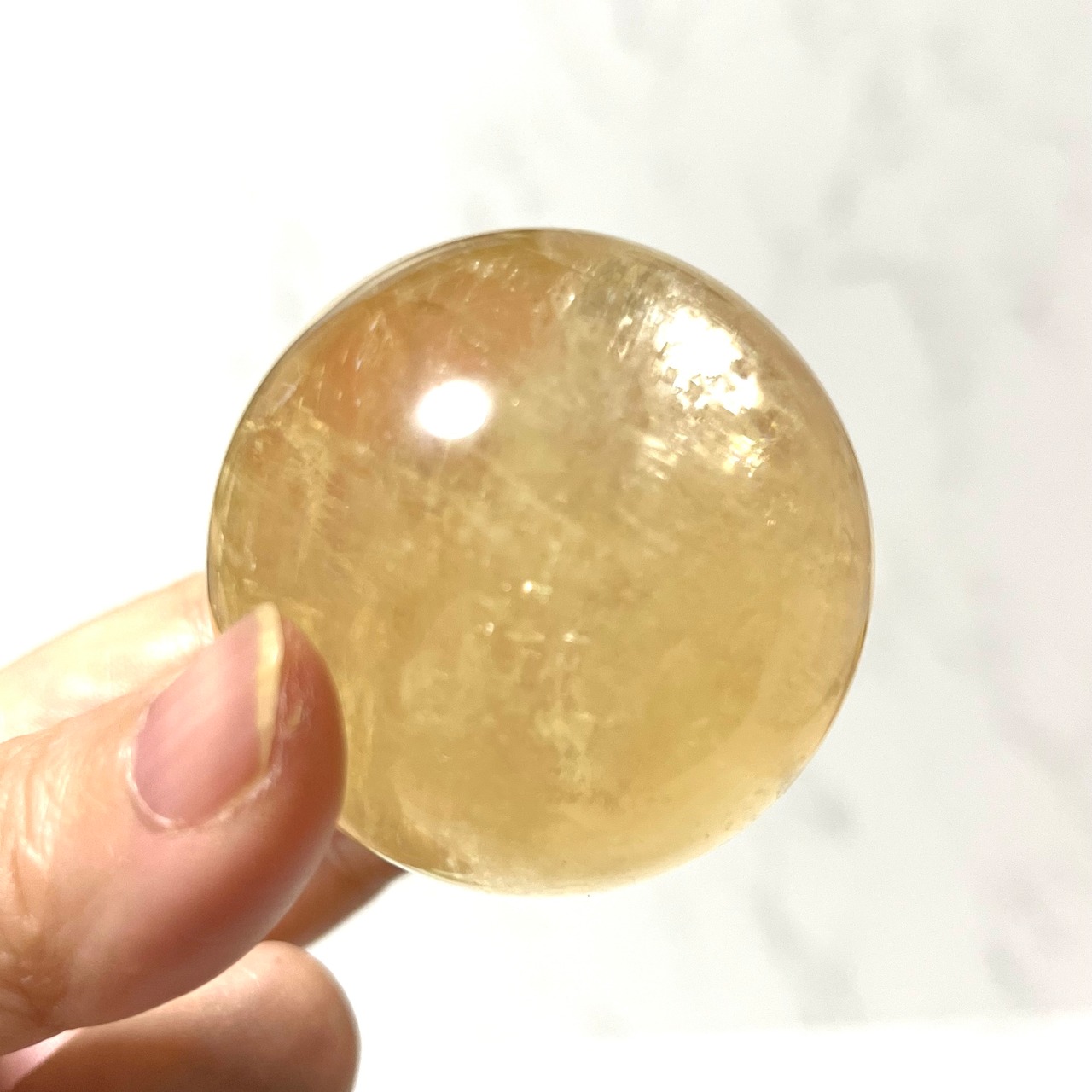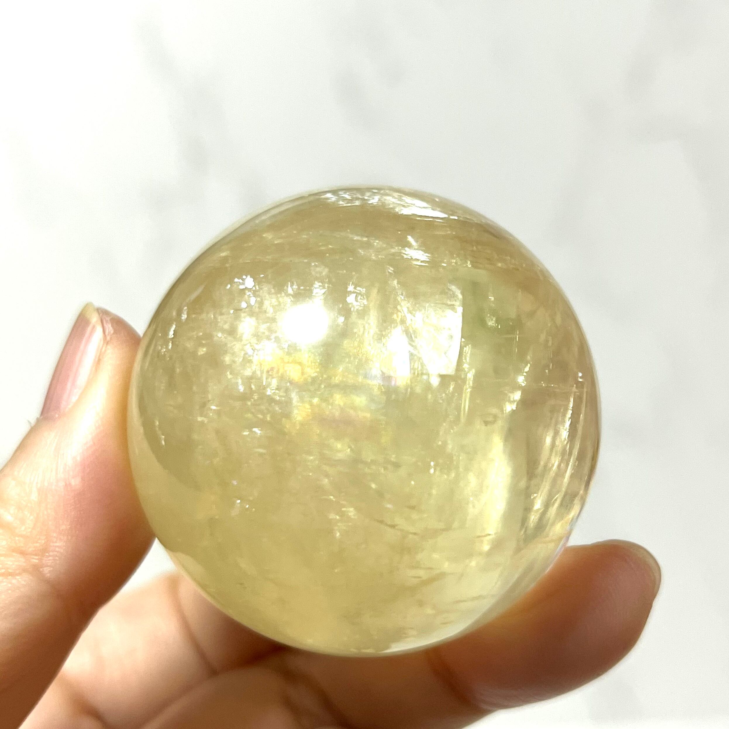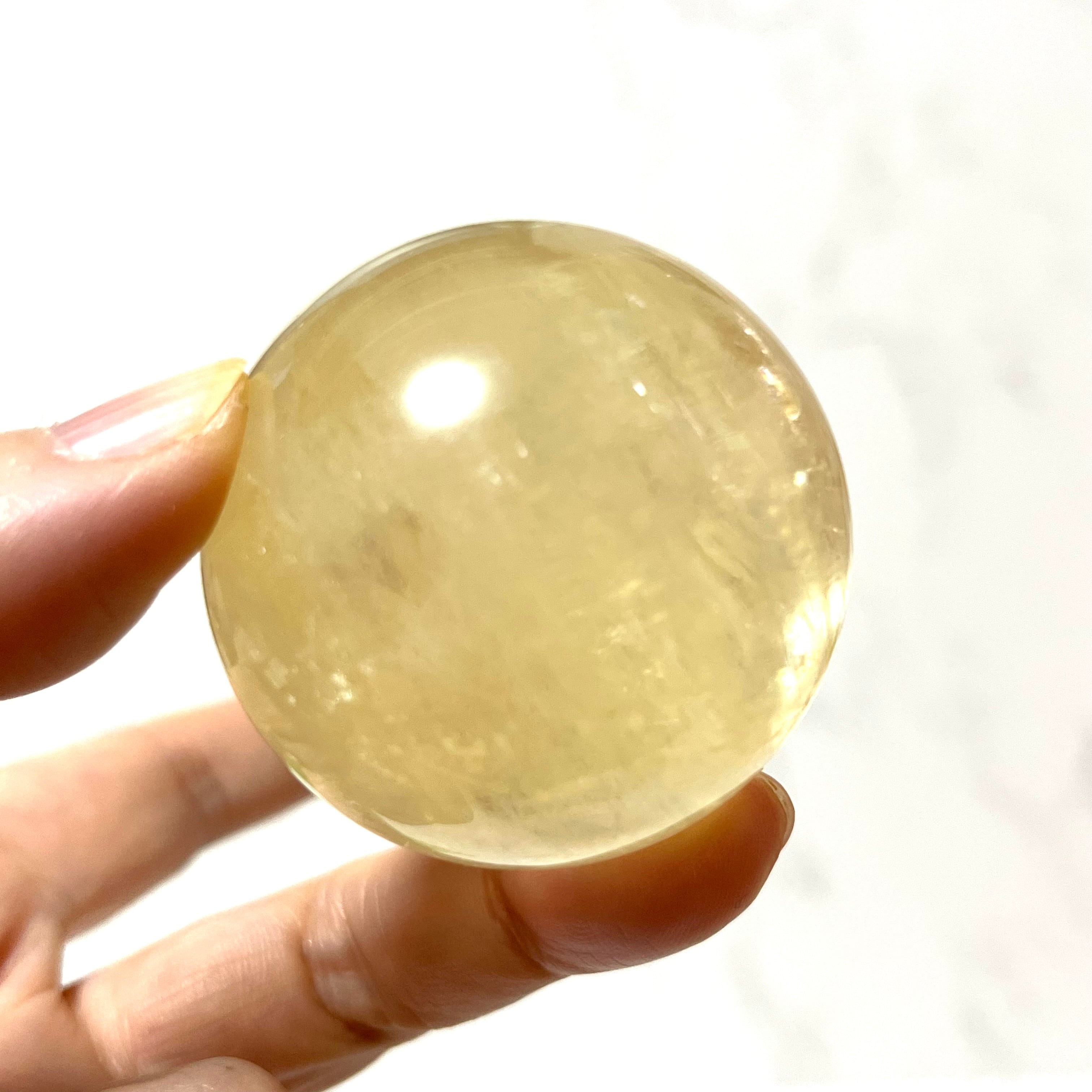 美しいシャンパンゴールドカラーのゴールデンカルサイトのスフィア(丸玉)です。