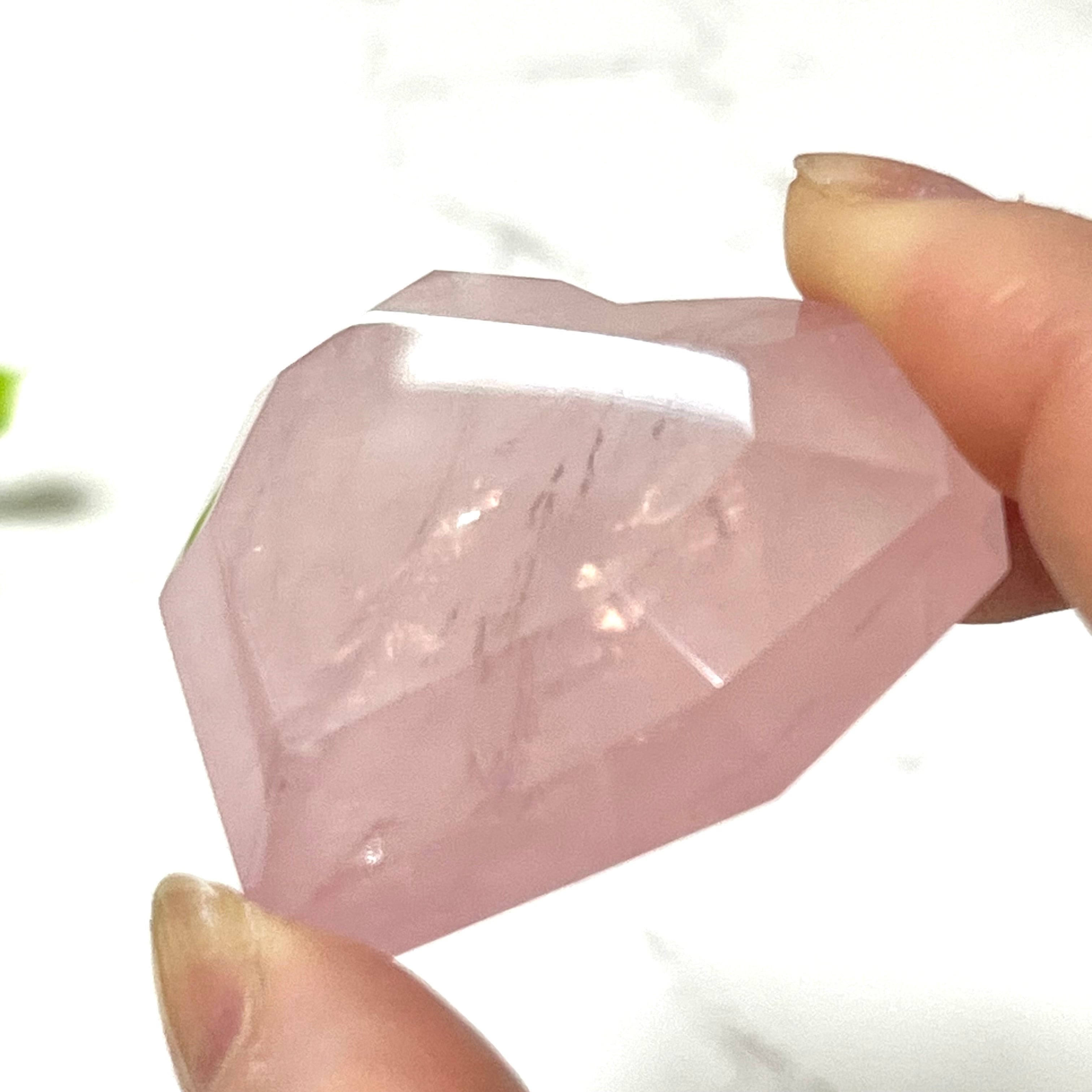 ほんのりと青みを感じさせるクールな印象のピンクのローズクオーツです。