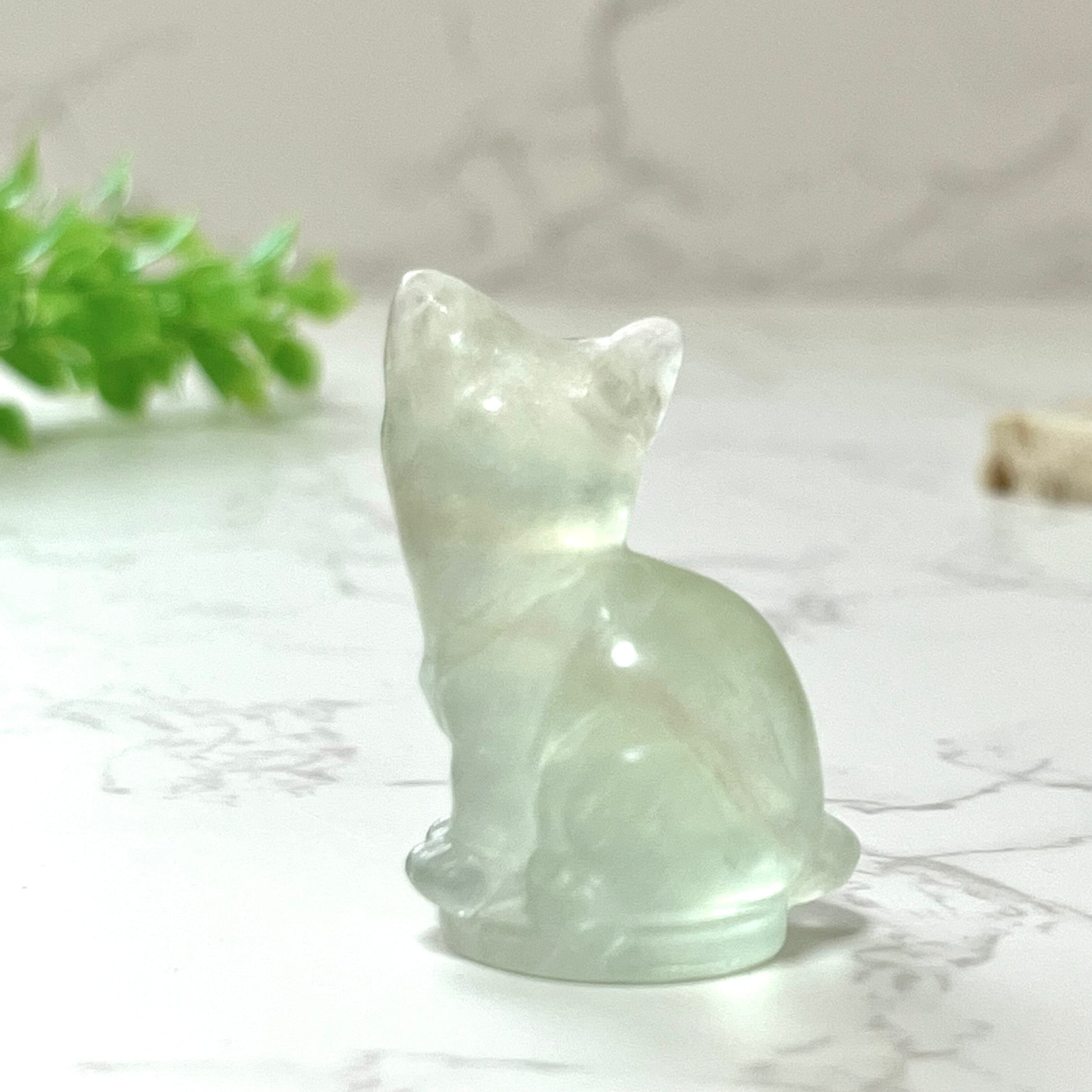 ほのかに色づくグリーンの色合いがまるでミントシャーベットのように美しいフローライトのネコです。